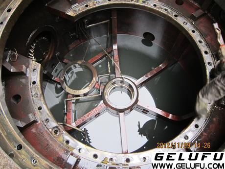 安排人員清洗減速機(jī)各部件及油池,打磨吊出大齒圈時(shí)與減速機(jī)殼體內(nèi)壁的擦痕。