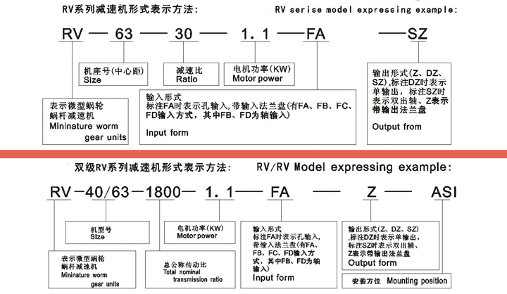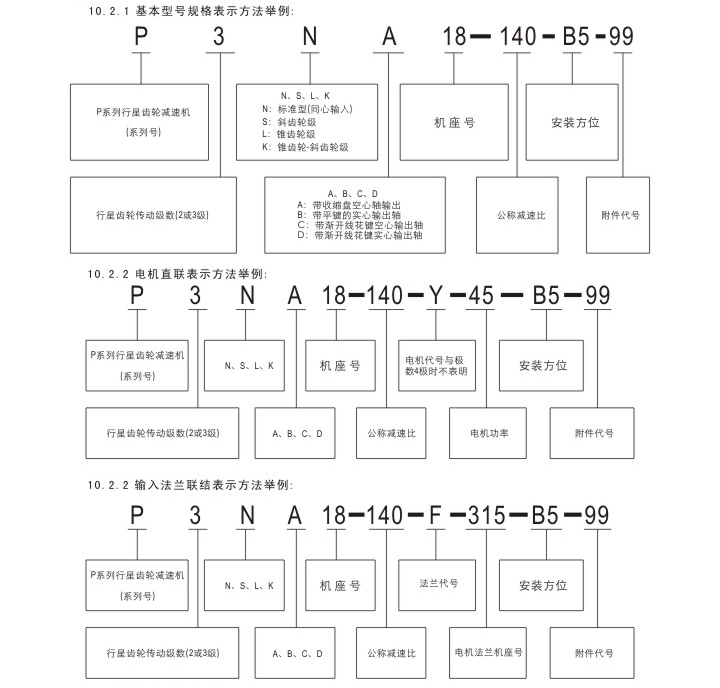 各系列減速機(jī)型號(hào)選型標(biāo)示規(guī)則舉例