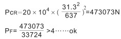 因為施加壓縮載荷,所以按照絲桿穩(wěn)定性校驗計算公式進(jìn)行校核,再根據(jù)JWB050US尺寸圖得出L=637取安全系數(shù)=4
