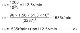 計算舉例:JWM200URH2000D在輸入轉(zhuǎn)速為1200r/min,軸端支撐下運(yùn)轉(zhuǎn),校核: