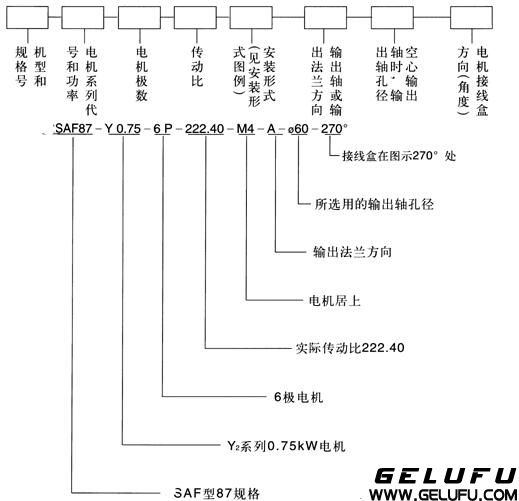 4.SAF型:B5法蘭、空心軸安裝。型號規(guī)格有GSAF37…GSAF97等7種。