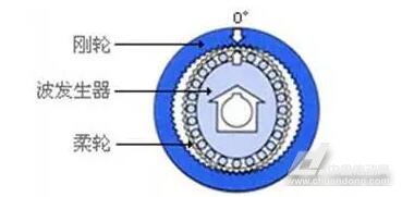 諧波傳動減速器是一種靠波發(fā)生器使柔性齒輪產(chǎn)生可控彈性變形,并與剛性齒輪相嚙合來傳遞運動和動力的齒輪傳動,主要由波發(fā)生器、柔性齒輪和剛性齒輪三個基本構(gòu)件組成。