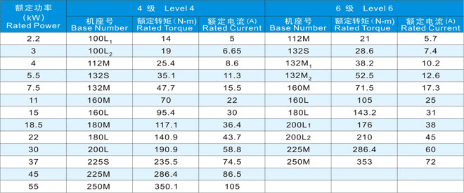 YVPEJ系列技術(shù)參數(shù)