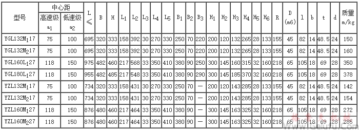 YZD、YGL、YZL、YGX、YZX輥道電機(jī)減速機(jī)主要尺寸JB/T 5562-1991