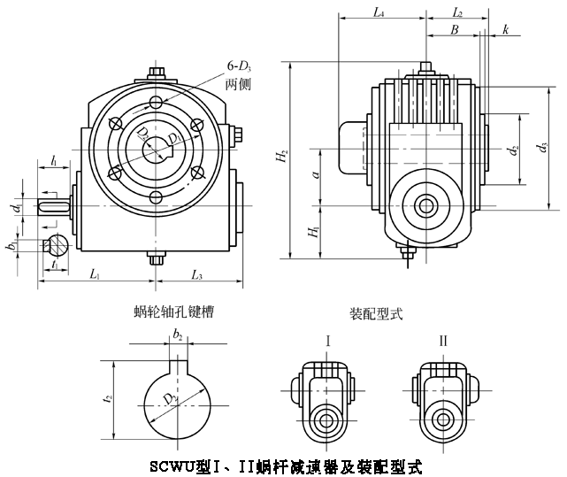 SCWU63、SCWU80、SCWU100、型減速機(jī)I、II裝配型式主要尺寸JB/T6387-1992
