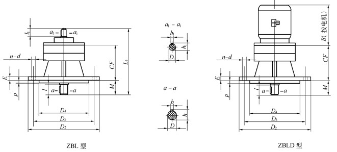 ZBL、ZBLD立式變幅擺線齒輪減速機(jī)外形和安裝尺寸