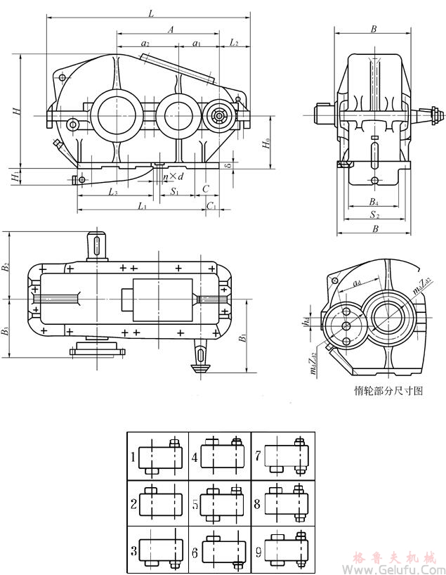PM250、PM350、PM400、PM500、PM650、PM750、PM850、PM1000、型減速機(jī)外形尺寸及其裝配型式