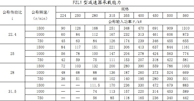 ①FZLY型減速機(jī)選用時(shí),首先應(yīng)滿足機(jī)械強(qiáng)度的要求。根據(jù)工作機(jī)械所需功率,考慮工