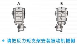 反力矩支架應(yīng)安裝在減速機(jī)朝向的工作機(jī)的那一側(cè),以減小附加在工作機(jī)軸上的彎矩。