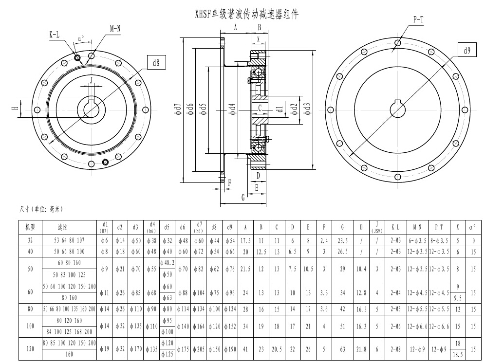 1、結(jié)構(gòu)簡單,采用一個柔輪、一個鋼輪和一個波發(fā)生器  ,可任意組合