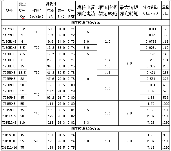 Y係列(IP44)三相異步電動(dòng)機(jī)主要技術(shù)參數(shù)(同步轉(zhuǎn)速750r/min)