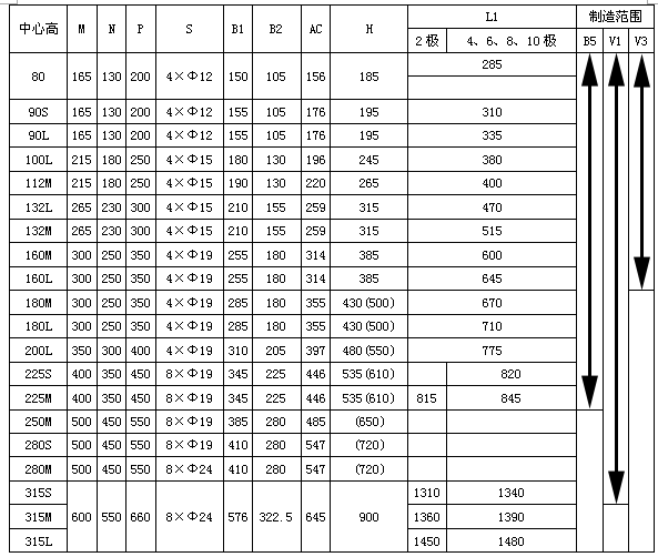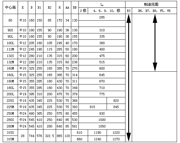 Y係列(IP44)B3、B7、B8、V5、V6三相異步電動(dòng)機(jī)外形及其安裝尺寸