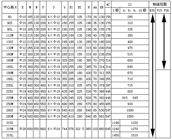 Y係列(IP44)B35、V15、V36三相異步電動(dòng)機(jī)外形及安裝尺寸