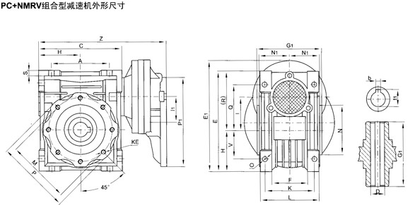 PC+NMRV組合型減速機(jī)外形及安裝尺寸