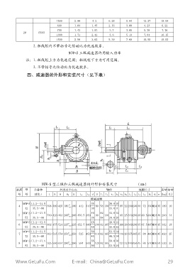 四 、 減 速 器 的 外 形 和 安 裝 尺 寸 ( 見 下 表 )