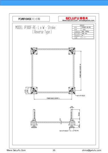 POWER BASE 尺寸圖 參數(shù)表 型號 類型 標(biāo)準(zhǔn) 負(fù)載重量 最大行程 齒輪組件 比例 m.eghtebas.com 35 china@gelufu.com