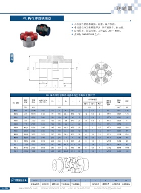 ML 型號(hào) 扭矩 轉(zhuǎn)速 ( 最小 - 最大 ) D H L 1 L 2 彈性件 慣量