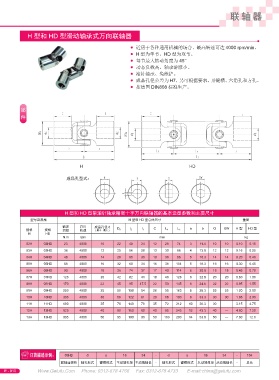 H 型和 HD 型帶滾針軸承精密十字萬向聯(lián)軸器的基本選型參數(shù)和主要尺寸