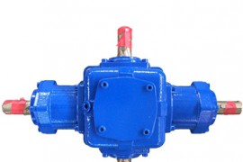 T齒輪轉(zhuǎn)向箱又名T齒輪換向器、傘齒輪轉(zhuǎn)向器,是一種動力傳達機構(gòu),是減速機中的一個系列,在工業(yè)領(lǐng)域有很廣泛的應(yīng)用。轉(zhuǎn)向箱目前已經(jīng)實現(xiàn)了標(biāo)準(zhǔn)化和規(guī)格多樣化。轉(zhuǎn)向箱有單軸、雙橫軸、單縱軸,雙縱軸可選。速比1:1、1.5:1、2:1、2.5:1、3:1、4:1、5:1全部為實際傳動比。轉(zhuǎn)向箱可以正反運轉(zhuǎn),低速或高速傳動平穩(wěn)。轉(zhuǎn)向箱當(dāng)速比不是1:1時,橫軸輸入、縱軸輸出為減速,縱軸輸入、橫軸輸出為增速。