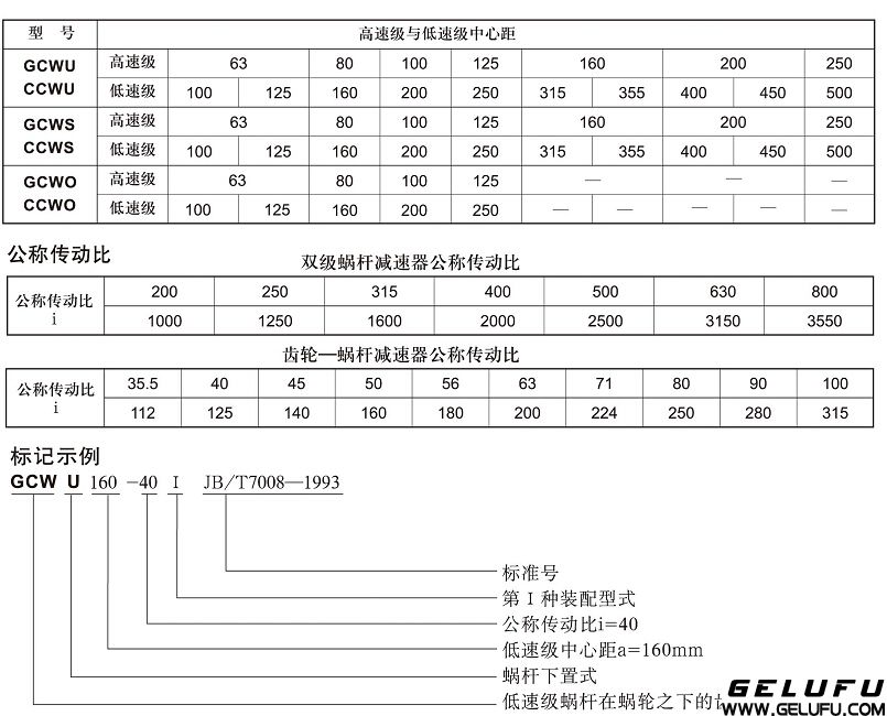 (4)GCWU型—低速級蝸桿在蝸輪之下的齒輪—蝸桿減速機;