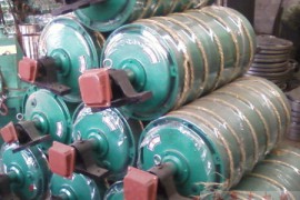 產(chǎn)品簡述:電動(dòng)滾筒是一種將電機(jī)和減速器共同置于滾筒體內(nèi)部的新型驅(qū)動(dòng)裝置,它主要應(yīng)用于固定式和移動(dòng)式帶式輸送機(jī),替代傳統(tǒng)的電動(dòng)機(jī),減速器在驅(qū)動(dòng)滾筒之外的分離式驅(qū)動(dòng)裝置,根據(jù)帶式輸送機(jī)的某些特殊場合需要,又出現(xiàn)了介于分離式驅(qū)動(dòng)和電動(dòng)滾筒驅(qū)動(dòng)形式之間的減速裝置在滾筒體內(nèi)部,電動(dòng)機(jī)在滾筒體外面的外裝式電動(dòng)滾筒,與分離式驅(qū)動(dòng)裝置相比,電動(dòng)滾筒具有結(jié)構(gòu)緊湊,傳動(dòng)效率高,噪聲低,使用壽命長,運(yùn)轉(zhuǎn)平穩(wěn),工作可靠,密封性好,占據(jù)空間小,安裝方便等諸多 點(diǎn),并且適合在各種惡劣環(huán)境條件下工作,包括潮濕,泥濘,粉塵多的工作環(huán)境,電動(dòng)滾筒的分類有四種基本方法,即依據(jù)電動(dòng)機(jī)冷卻方式,所采用減速器傳動(dòng)結(jié)構(gòu)類型,電動(dòng)滾筒基本工作環(huán)境特征和電機(jī)置于滾筒內(nèi)外這幾種方法來將電動(dòng)滾筒分類,冷卻方式風(fēng)冷式電動(dòng)滾筒這種電動(dòng)滾筒的特點(diǎn)是電動(dòng)機(jī)不用油液冷卻,靠傳導(dǎo),輻射和風(fēng)的對流,又可分為強(qiáng)制風(fēng)冷和自然風(fēng)冷兩種,油冷式電動(dòng)滾筒這種電動(dòng)滾筒也稱為間接油冷式電動(dòng)滾筒,電動(dòng)滾筒內(nèi)有一定的冷卻油液,由于滾筒體不停地旋轉(zhuǎn),筒體上刮油板將油液不停地澆到電動(dòng)機(jī)和齒輪上,帶走電動(dòng)機(jī)和齒輪工作時(shí)產(chǎn)生的熱量,把熱量傳遞到滾筒體壁上,加速電機(jī)散熱,并對齒輪產(chǎn)生潤滑作用,油冷式電動(dòng)滾筒的關(guān)鍵是電動(dòng)機(jī)內(nèi)部不允許進(jìn)入油液,油浸式電動(dòng)滾筒油浸式電動(dòng)滾筒也叫直接油冷式電動(dòng)滾筒,這類型的電動(dòng)滾筒允許油液進(jìn)入電動(dòng)機(jī)內(nèi)部,直接與電動(dòng)機(jī)轉(zhuǎn)子和定子繞組接觸,將它們工作時(shí)產(chǎn)生的熱量靠滾筒體不斷地旋轉(zhuǎn)而傳遞到滾筒體內(nèi)壁,這種結(jié)構(gòu)的散熱效果較好,但對潤滑油和電動(dòng)機(jī)的質(zhì)量相對要求也較高,