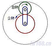 有定必有動(dòng),對應(yīng)地,有一類不那么為人熟知的稱為"行星齒輪"的齒輪,它們的轉(zhuǎn)動(dòng)軸線是不固定的,而是安裝在一個(gè)可以轉(zhuǎn)動(dòng)的支架(藍(lán)色)上(圖中黑色部分是殼體,黃色表示軸承)。行星齒輪(綠色)除了能象定軸齒輪那樣圍繞著自己的轉(zhuǎn)動(dòng)軸(B-B)轉(zhuǎn)動(dòng)之外,它們的轉(zhuǎn)動(dòng)軸還隨著藍(lán)色的支架(稱為行星架)繞其它齒輪的軸線(A-A)轉(zhuǎn)動(dòng)。繞自己軸線的轉(zhuǎn)動(dòng)稱為"自轉(zhuǎn)",繞其它齒輪軸線的轉(zhuǎn)動(dòng)稱為"公轉(zhuǎn)",就象太陽系中的行星那樣,因此得名“行星齒輪”。