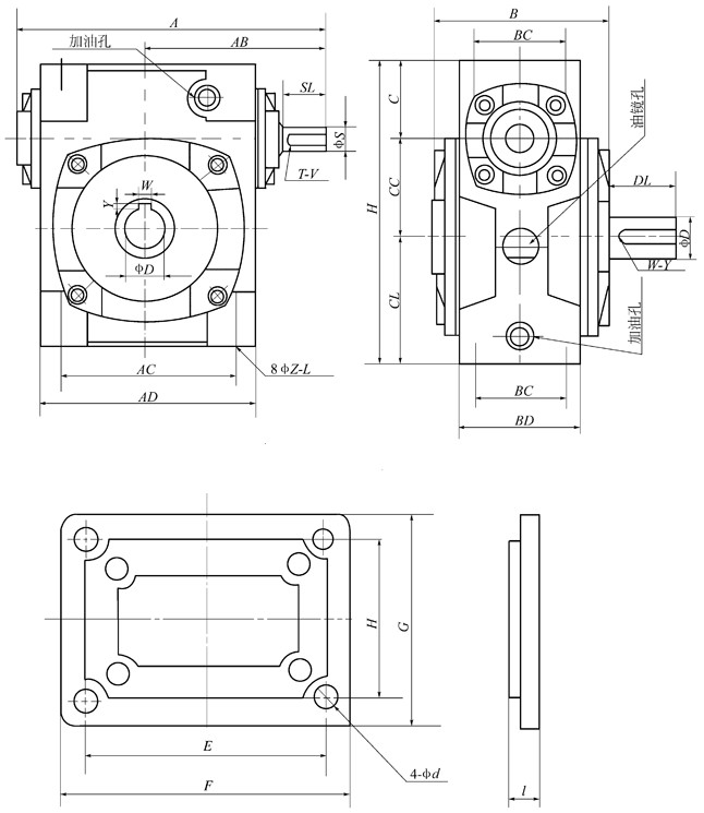 WS型蝸輪蝸桿減速器外形安裝尺寸